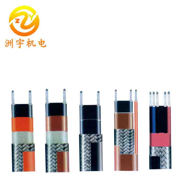 在兩個平行導線中間充填PTC高分子導電塑料作芯帶,其中高分子塑料的基體材料起骨架和填料載體的作用,無機導體填料是電流載體在絕緣體中形成連通的導電網絡,起電流通后發熱,以補償管道的散熱損失。